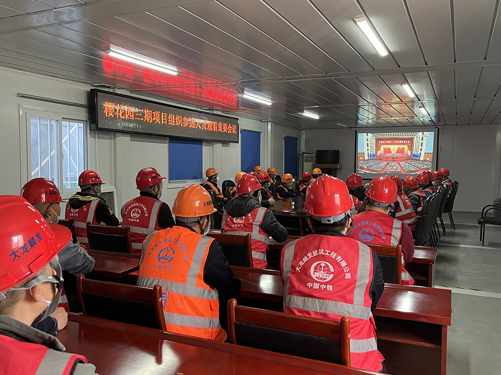大龙控股所属大龙顺发樱花园项目部组织党员干部观看二十大开幕式